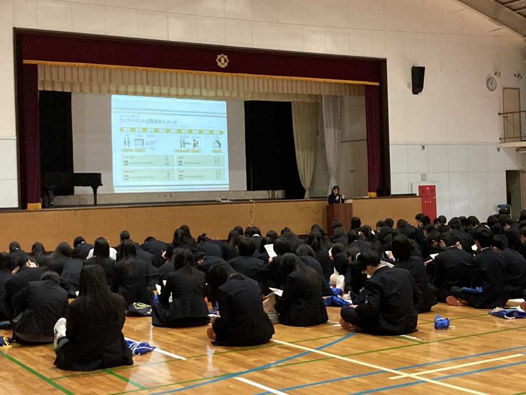 学校法人興南学園興南高等学校1年生を対象に「資産形成セミナー」「生活設計・家計管理セミナー」を開催しました。夢や目標に向かう生徒のみなさんへ、大学受験や一人暮らしにかかる諸費用、モノやサービスの20年間における価格変動を説明し、資産形成の必要性をお伝えいたしました。投資体験ゲームでは、投資は情報と予測が必要であることを体感していただきました。受講した生徒からは「高校1年生で大学進学する2年後のことを考えさせてくれて、想像が今までよりもっと膨らんだ」「ゲームを通して、投資のメリットやリスク、成功体験ができて、もって勉強して実際にやってみたいなと思えた」などの感想をいただきました。今後も未来を担う若い世代の皆さんに、お金に関する正しい知識をお伝えしてまいります。