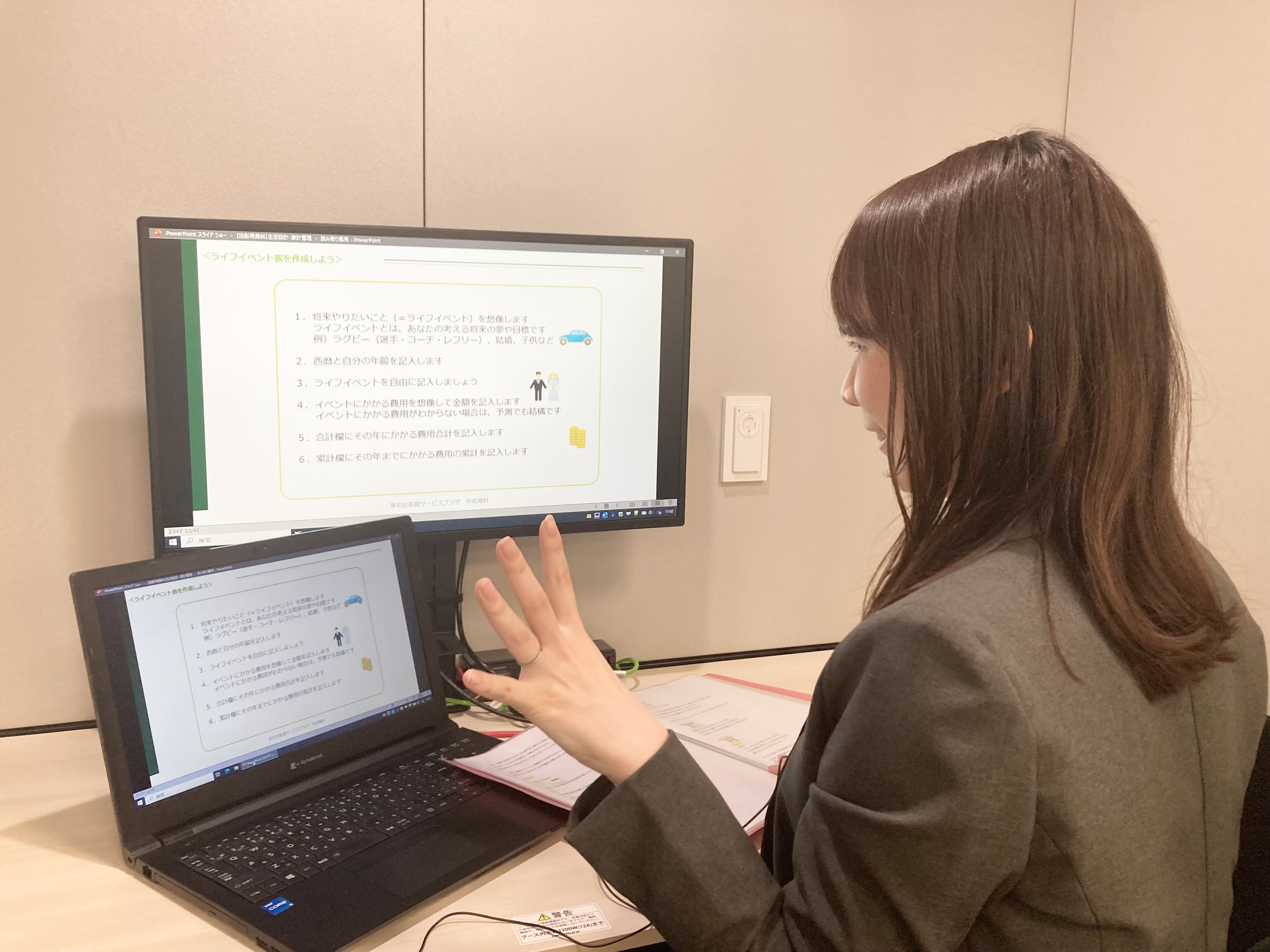 就労移行支援事業所LITALICOワークス沖縄の利用者の皆さまを対象に「生活設計・家計管理セミナー」「金融トラブルセミナー」を開催しました。将来の目標や夢を想像していただき、達成するために必要な資金を確保するための計画的な貯蓄方法を学んでいただきました。また、近年多発する詐欺や名義貸しの対策として、具体的な手口や事例をお伝えし、名義貸しを依頼された場合の断り方をワークで習得いただきました。受講した利用者からは「先取貯蓄を初めて聞いたのでやってみようと思いました」「消費者トラブルや危険な詐欺の対策についてイメージできました」などの感想をいただきました。今後も地域の皆さまに、お金に関する正しい知識をお伝えしてまいります。