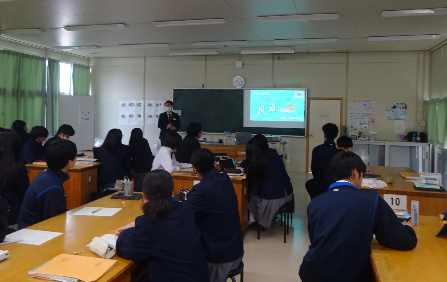 沖縄県立開邦高等学校1年生を対象に「お金に関するアクティブラーニング型セミナー」「資産形成セミナー」を開催しました。お金の「消費」「浪費」「貯金」「投資」の4つの使い方について考えていただき、貯金や投資を中心に学んでいただきました。貯金では、先取り貯蓄の具体的な方法として財形貯蓄制度と自動振替をお伝えし、投資については、実際に投資体験ゲームを行い情報と予測の重要性、リスクについて学んでいただきました。受講した生徒からは「お金を将来のために貯めておく事やお金の視点から人生を長期的に考えていくことの大切さが印象に残った」「グループで話し合って自分たちが思っているよりお金の感覚がないことに気づくことは楽しかった」などの感想をいただきました。今後も未来を担う若い世代の皆さんに、社会で役立つお金に関する正しい知識をお伝えしてまいります。