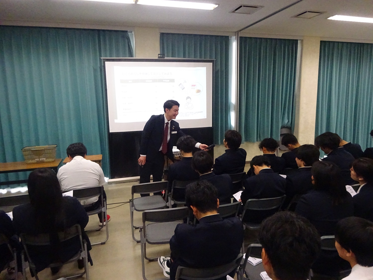 沖縄県立沖縄水産高等学校3年生を対象にSMBC日興証券株式会社と協働で「生活設計・家計管理セミナー」「資産形成セミナー」を開催しました。当社からは、一人暮らしでかかる費用を予測してから実際の統計データとの比較を行うワークを行い、家計管理の必要性をお伝えしました。また、新成年が狙われやすい「金融トラブル」についても学んでいただきました。SMBC日興証券からは、物価や金利が変動している社会情勢を踏まえ、「資産形成」の必要性や留意点、リスクを減らす方法についてお伝えしました。受講した生徒からは「自分がどれぐらい稼げばいいのかを考えたのが印象に残った」「もし被害に遭ってしまったら、1人で抱え込まずに相談窓口など大人に相談できるように気をつける」「投資や今後のライフプランニングについて考えることができた」などの感想をいただきました。今後もSMBCグループが一体となり、お金に関する正しい知識をお伝えしてまいります。
