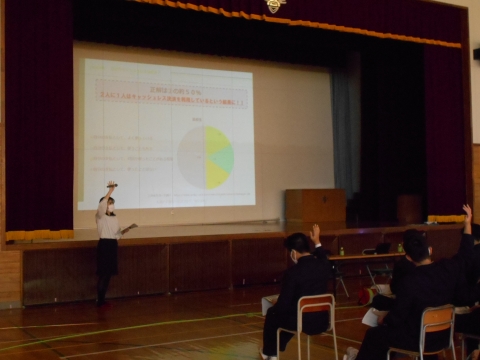 北海道札幌白陵高等学校の3年生を対象に「金融トラブルセミナー」を開催しました。若い世代の方が被害に遭いやすい「フィッシング詐欺」「フリマサービス等でのトラブル」「アルバイト詐欺」の事例と対応策について、クイズやアルバイト詐欺の寸劇を交えながらお伝えしました。積極的にクイズに挙手し参加する生徒の皆さんの姿や、若い世代の方が被害に遭いやすい話ということで真剣な面持ちで受講されている姿が印象的でした。今後も未来を担う生徒の皆さまに、お金に関する正しい知識を学んでいただけるよう活動を行ってまいります。