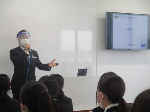 学校法人松山ビジネスカレッジ専門学校松山ビジネスカレッジビジネス校1年生を対象に「ローン・クレジットセミナー」「金融トラブルセミナー」を開催しました。契約の成立やクーリングオフ制度についてクイズを交えて説明しました。またワンクリック詐欺や悪質なマルチ商法など若者が被害に遭いやすいトラブル事例をお伝えしました。受講した学生からは「ほかの人がわかりやすいようなパスワードは設定しないほうがいいということが聞けて良かったです」などの感想をいただきました。今後も未来を担う若い世代の方々のお金に関する知識習得支援を行ってまいります。