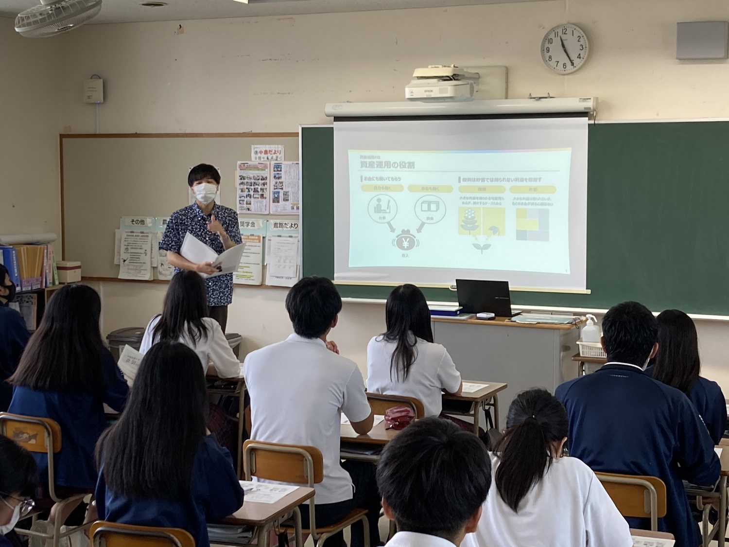 学校法人森教育学園岡山学芸館高等学校の1年生を対象に、「お金に関するアクティブラーニング型セミナー」を開催いたしました。「お金を育てる投資という選択肢」のテーマでは、お金の使い方には消費・浪費・貯蓄の他に、投資という選択肢があることをお伝えし、投資には情報と予測が必要であることや、リスクとリターンの関係性について学んでいただきました。投資体験ゲームでは、皆さんが株価の変動を一生懸命予測する様子がとても印象的でした。また、「将来に備えるお金の話」では、それぞれ個人のライフイベントに応じて必要資金が異なり、その資金を準備するのに貯蓄するだけでは資産が目減りしてしまうことなども説明いたしました。投資には情報と予測が大切なことや、ギャンブルとの違い、投資の種類等、様々な資産運用の方法を知っていただくことが出来ました。今後も未来を担う若い世代の方々に、お金に関する様々な知識を学んでいただけるよう活動して参ります。